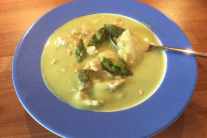 - Sekoita ainekset keskenään hyvin ja kaada seoksen päälle ruokakerma.