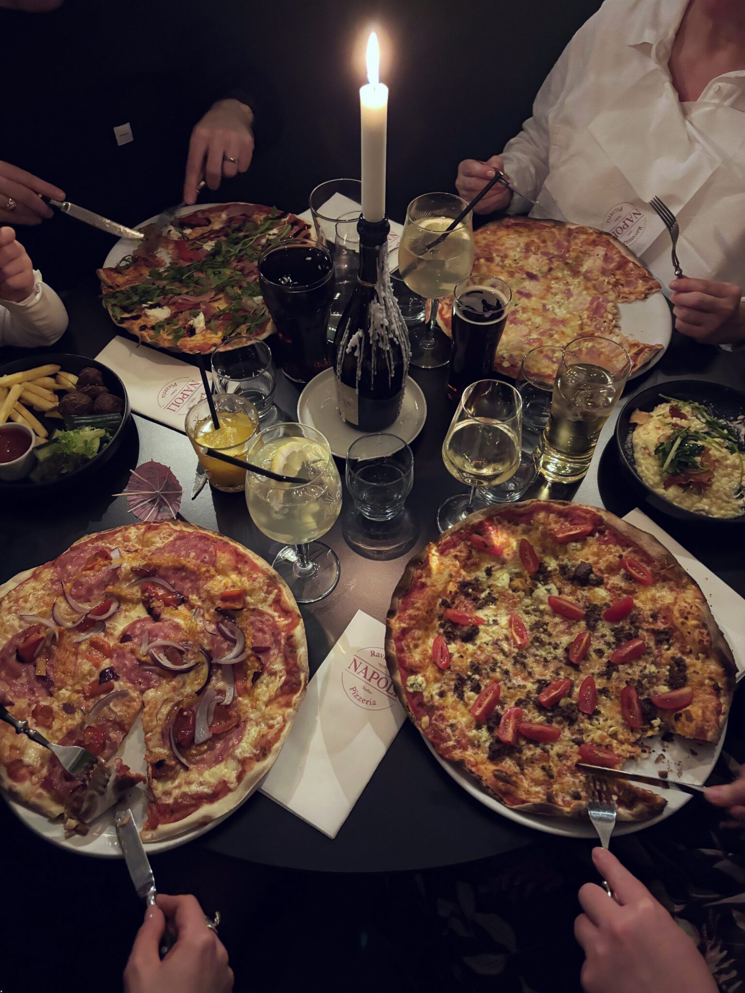 En ole pitkään aikaan järjestänyt itselleni syntymäpäiväjuhlia ja tänä vuonna oli jotenkin sellainen fiilis, että jotkin pienet juhlat haluaisin nyt järjestää. En halunnut ottaa juhlien järjestämisestä ruoan suhteen mitään stressiä, joten päätin järjestää juhlat suoraan ravintolassa. Ravintolaksi valikoitui viereinen kortteliravintola Napoli, jossa olen käynyt useasti ja nyt uuden rempan ja omistajavaihdoksen myötä ravintola on saanut ripauksen tyylikkyyttä ja sadan pizzan menu on karsittu tarkasti valittuihin pizzoihin, risottoihin, salaatteihin ja pastoihin. Ravintolasta saa myös gluteenitonta pizzaa ja pastaa.