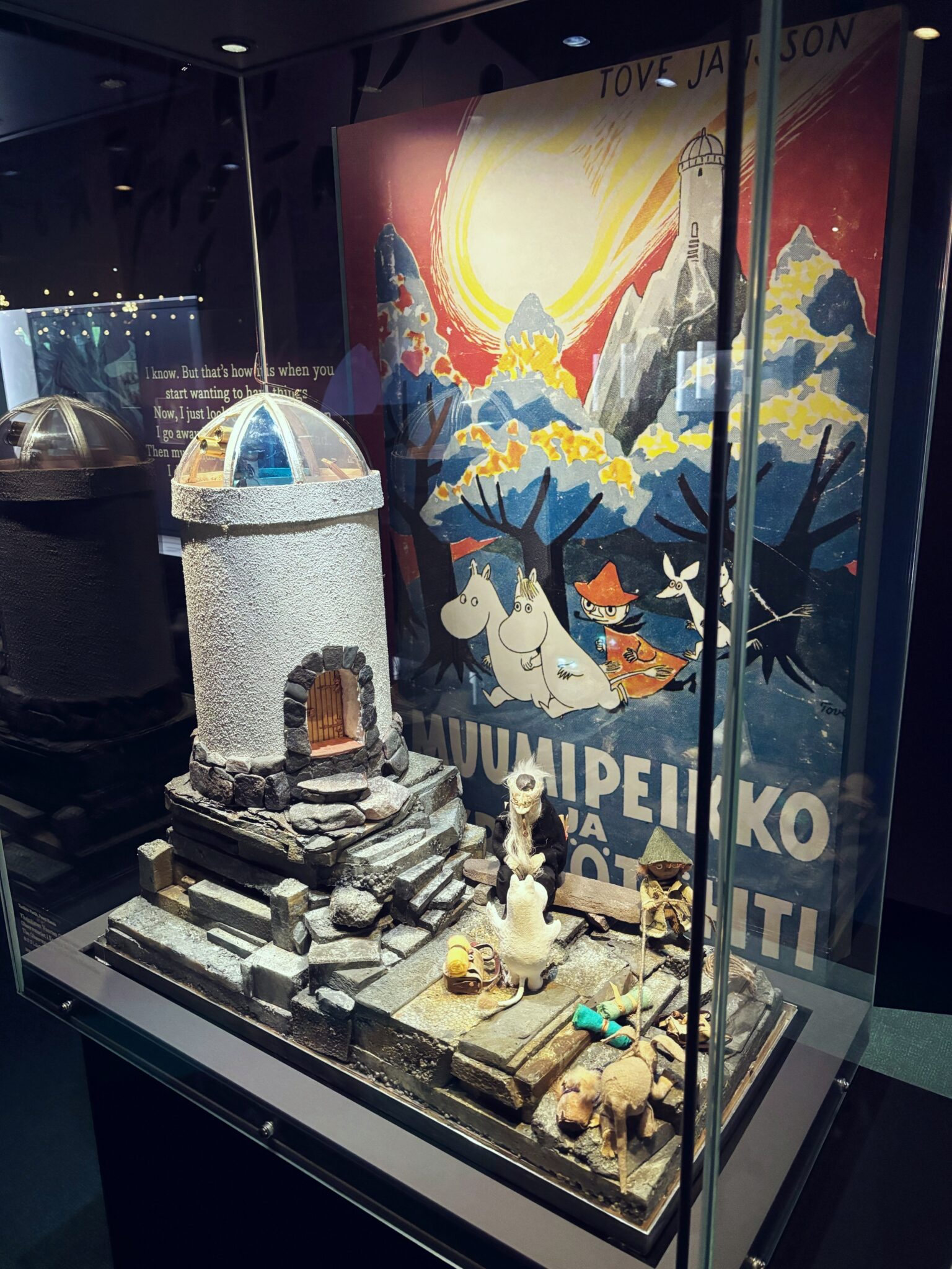 Olin työreissulla Tampere-talossa ja he sieltä antoivat minulle lipun Muumimuseoon. Tälläisenä Muumihönttinä olin aivan totaalisen fiiliksissä museosta. Muumimuseota koristaa Tove Janssonin alkuperäiset muumikirjojen kuvitukset, jotka hän lahjoitti museolle 1986. Tarinoita täydentävät Toven elämänkumppanin Tuulikki Pietilän rakentamat vauhdikkaat kolmiulotteiset muumikuvaelmat. Museo oli niin kaunis, että mulla meni ihan silmät vetisiksi, koska jotku taideteokset olivat vaan niin upeita ja tottakai monista Muumi jutuista tuli mieleen Katri-mamma. Olisin voinut olla museossa monta tuntia, mutta nyt jouduin töiden takia hiihtämään sen aika nopeasti läpi.