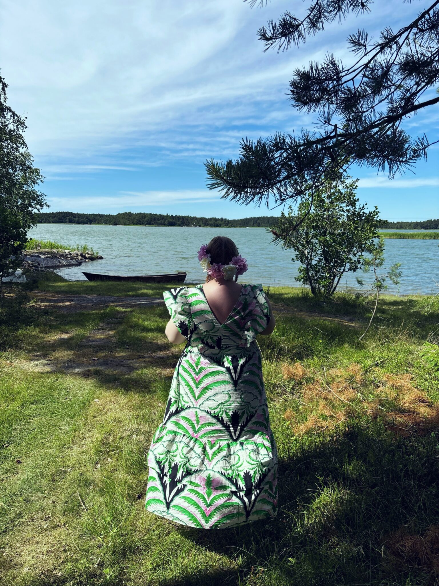 Miehet grillasi ja mä katoin pöydän. Meitä oli aika iso porukka, varmaan kymmenen henkeä ainakin ja oli mukava syödä yhdessä ulkona. Käytiin saunomassa ja uimassa. Yllätyin, kun puolisoni kävi ainakin kolme kertaa uimassa, kun yleensä hän karttaa vettä kuin ruttoa. Lähdettiin joskus yhdeksän aikaan ajelemaan takaisin Turkuun. Oli kyllä ihana päivä!
