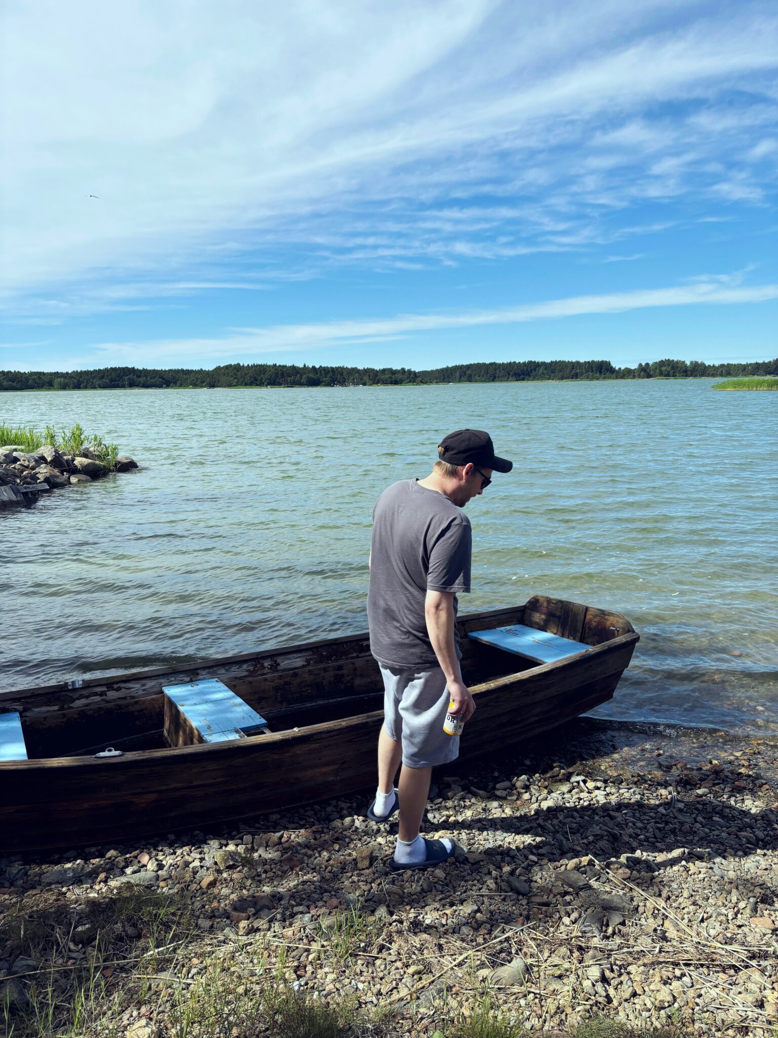 Juhannuspäivänä suunnattiin äitini kyydissä Uuteenkaupunkiin. Äitini veli eli minun enoni menehtyi muutama viikko sitten ja äidin piti käydä vähän hänen tavaroitaan läpi ja palauttaa vuokra-asunnon avaimet. Vietettiin ihana päivä Lokalahdella ystäväni vanhempien mökillä. Miehet ja lapset olivat käyneet kalastamassa ahvenia ja mä pyysin mun miestä pelastamaan ne ja päästämään takaisin mereen ja siitä tulikin lapsille hauska ohjelmanumero, kun päästettiin ahvenet takaisin kotiin. Toin mökille tuliaisena kirsikoita ja leivoin aamulla mökkikakun, joka sai hurjasti kehuja.