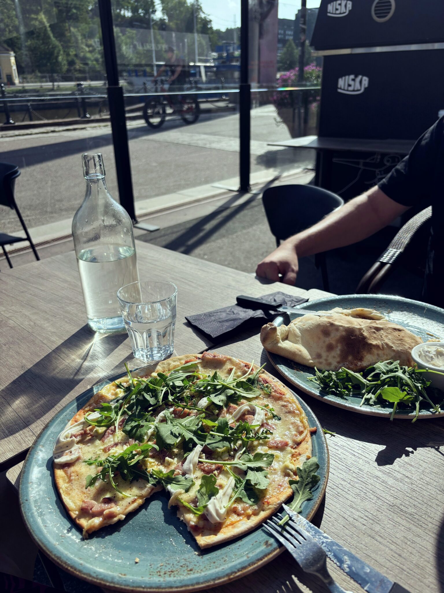 Syö Turku -viikoille tuli sopivasti ihana ilma ja käytiin puolison kanssa lounastreffeillä jokirannan Ravintola Niskassa. En ollut aikaisemmin vielä Niskassa käynytkään ja tykkäsin kovasti sijainnista, sisustuksesta ja ruoka oli 10/10. Otettiin samat annokset, mutta koska mulla oli gluteeniton, niin se näytti hieman erilaiselta kuin tuo puolison taikinapallura 😀