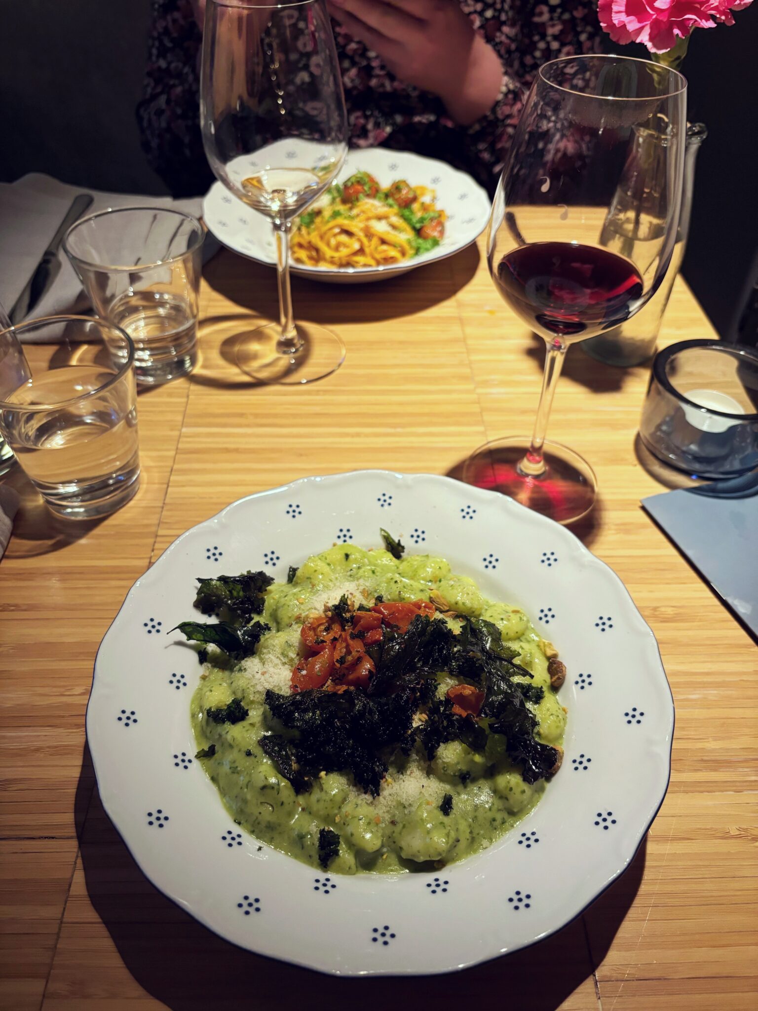 Kävin eräänä syyskuun lauantaina ystäväni tyttären 4-vuotis synttäreillä Liedossa. Synttäreiden jälkeen suuntasin takaisin Turkuun ja treffasin ystäväni Marian Tårgetissa, jossa meillä oli pöytävaraus. Tårget on kyllä niin kaunis rakennus ja täydellinen paikka lauantain dinnerille. Mä otin gluteenittomia gnoccheja, jotka oli paistettu pistaasi-basilikavoissa ja päällä oli paahdettuja pistaasipähkinöitä, kuivattua tomaattia, lehtikaalia ja parmesaania. Annos oli ihan hyvä, mutta ehkä vähän kuivahko – gluteeniton pasta on mun mielestä aina kuivaa oli se tehty sitten ravintolassa tai kotona. Joka tapauksessa vatsa tuli täyteen ja jatkettiin vielä muutamille drinksuille keskustaan. Marian kanssa on aina niin ihanaa – ollaan tunnettu alaikäisistä asti. Ollaan koettu yhdessä kasvumatka nuorista tytöistä aikuisuuteen ja se on aika ihanaa, että on näin pitkäaikainen ystävä vieläkin elämässä mukana.