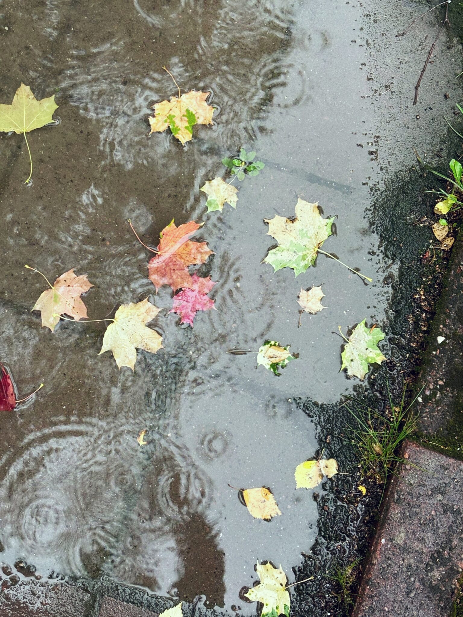Luin sängyssö kirjaa ja kuulin, kuinka sade ropisi ikkunaan. Rakastan sadetta ja sen ääniä – ja varsinkin sateen tuoksua. Syyskuussa lehdet olivat alkaneet jo ruskastua ja putoilla maahan. Suuntasin välittömästi ulos haistelemaan ihanaa sadeilmaa, eikä mua haitannut yhtään vaikka kastuin. Oli vaan niin maagista katsella kaunista luontoa ja kuunnella sen ääniä.
