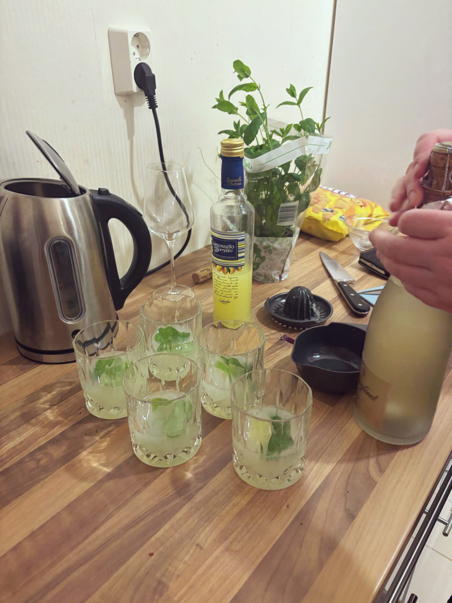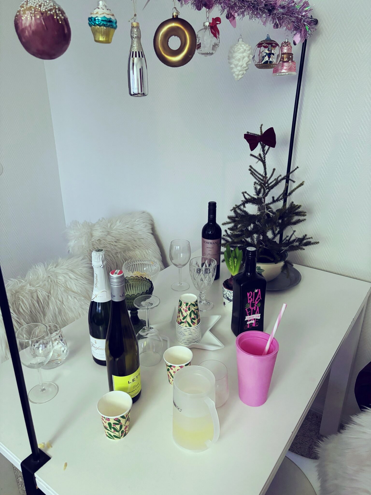 Odottava ja kupliva tunnelma, hyvä seura, ruoka, skumppa ja sädetikut.