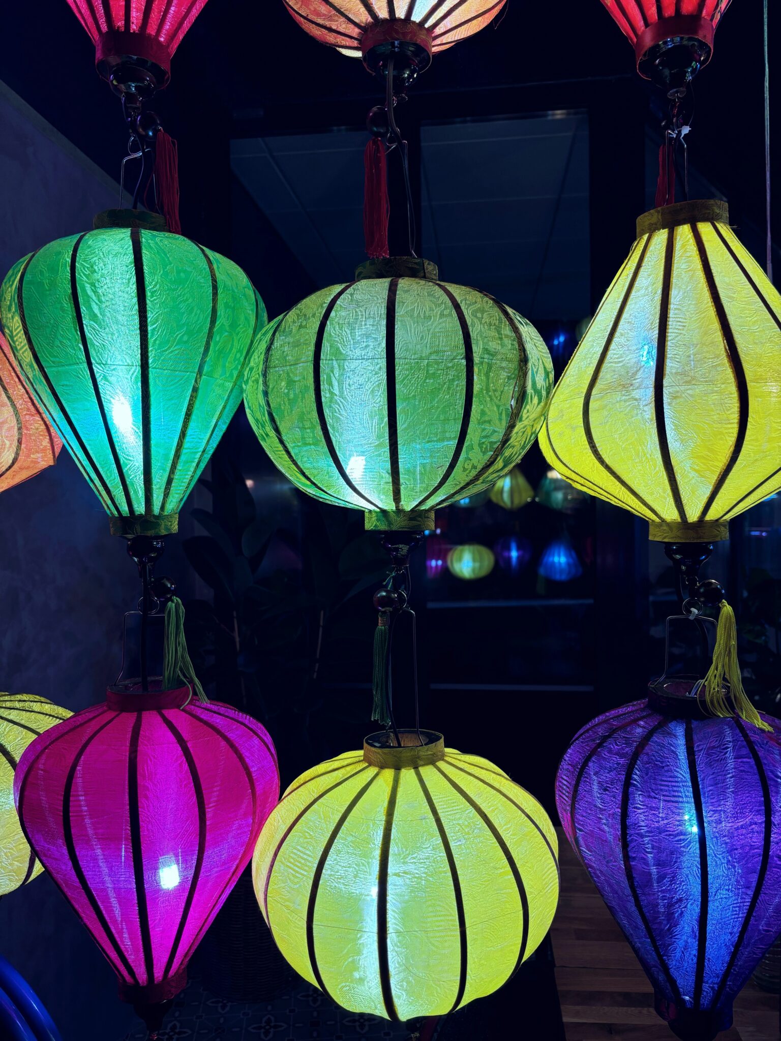 Ravintola näytti kivalta ulkoapäin ja sisälle mentäessä vastaan tuli upea lyhdyistä tehty seinämä. Tarjoilija ohjasi meidät pöytään ja alettiin selata ruokalistaa. Menusta löytyi kevät-, ja kesärullia, salaatteja, dumplingseja, bowleja, nuudelikeittoja ja erilaisia liha-annoksia riisillä ja nuudeleilla. Me valittiin ystävän kanssa samat ruoat eli halloumitacot, jotka sai myös gluteenittomana.