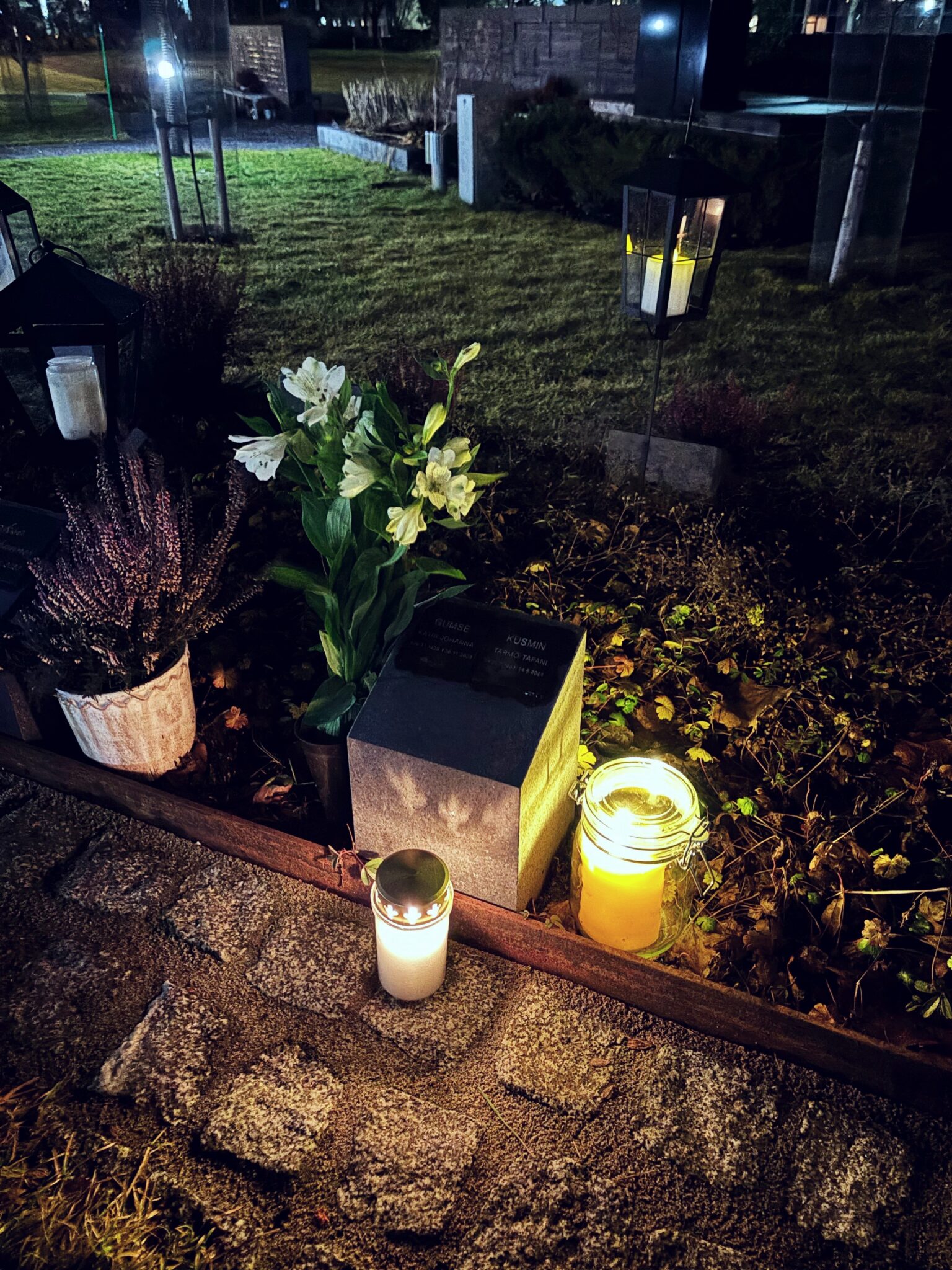 Rakas Katri-mamma menehtyi edellisen vuoden marraskuussa 2023 vain kaksi päivää mun syntymäpäivän jälkeen. Hänet haudattiin vasta viime vuoden toukokuussa. Pääsin siis nyt ekaa kertaa ikinä viemään Katrille synttärikukat hänen haudalle. Tarmo-enoni kuoli melko pian Katrin jälkeen viime vuoden kesäkuussa ja hänet haudattiin samaan hautaan äitinsä Katrin kanssa. He olivat kuin paita ja peppu ja musta tuntuu, ettei enoni kestänyt Katrin kuolemaa. Vein kynttilän heidän haudalleen myös jouluna. En vieläkään tahdo ymmärtää, että he molemmat ovat poissa, koska mun mielessä ja muistoissa he ovat niin elossa.