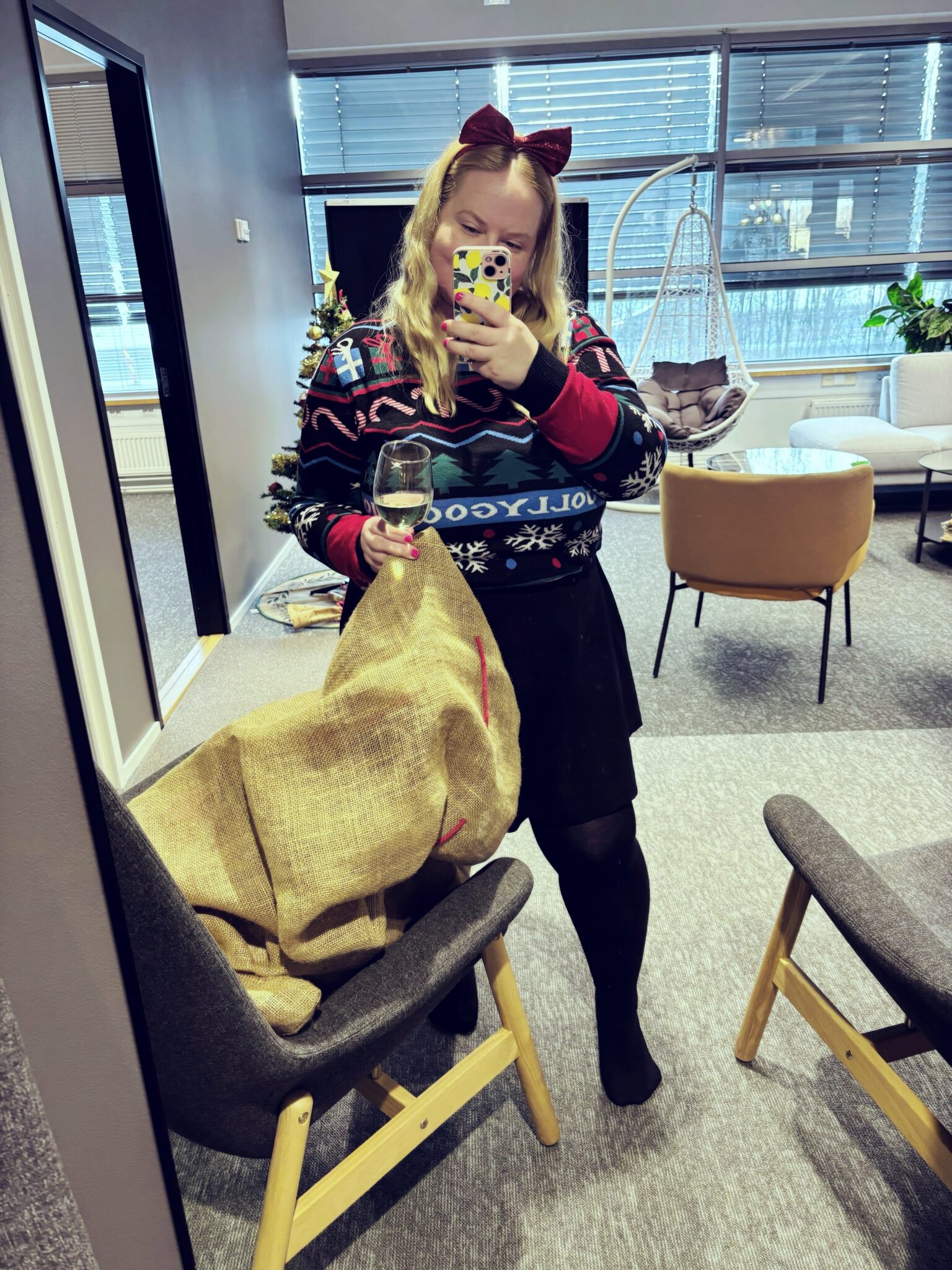 Meillä oli töissä Espoon toimistolla joululounas, johon kuului perinteisiä jouluherkkuja sekä raikkaita salaatteja. Söin vatsan ihan täyteen ja jälkkäriksi otin vähän viiniä. Meillä oli Secret Santa eli kaikki sai nimetyn henkilön kenelle piti ostaa 10€ arvoinen lahja. Mä olin meidän uuden johdon assistentin Secret Santa ja mulla oli hänelle lahjakassissa kasvonaamioita, suklaata ja pari The Body Shopin matkakokoista tuotetta. Mun Secret Santa oli meidän toimitusjohtaja, jolta sain Joik:in tuoksukynttilän ja inkivääriteetä – best!