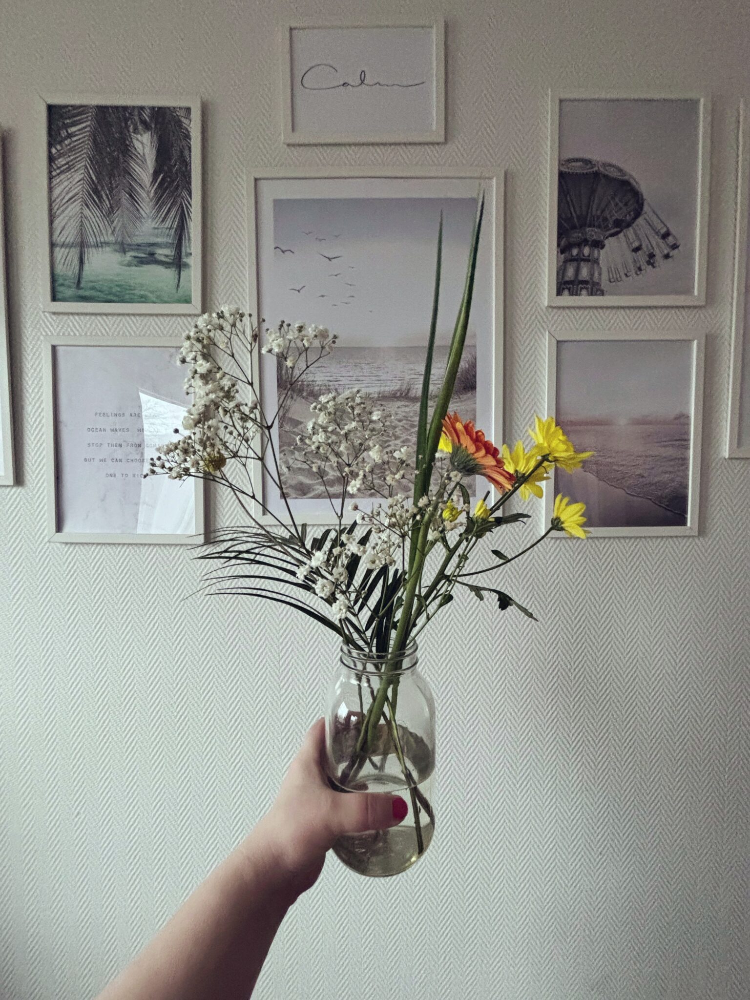 Osta itsellesi kukkia. Mä ostan tosi usein S-ryhmän alle viiden euron viikkokimppuja ja saksin kimpun pariin maljakkoon. Myös K-ryhmältä saa edullisia K-menun viikkokimppuja neljällä eurolla. Oma suosikkini on myös eucalyptyksen oksat, jotka tuovat raikkaan tuoksun kotiin.