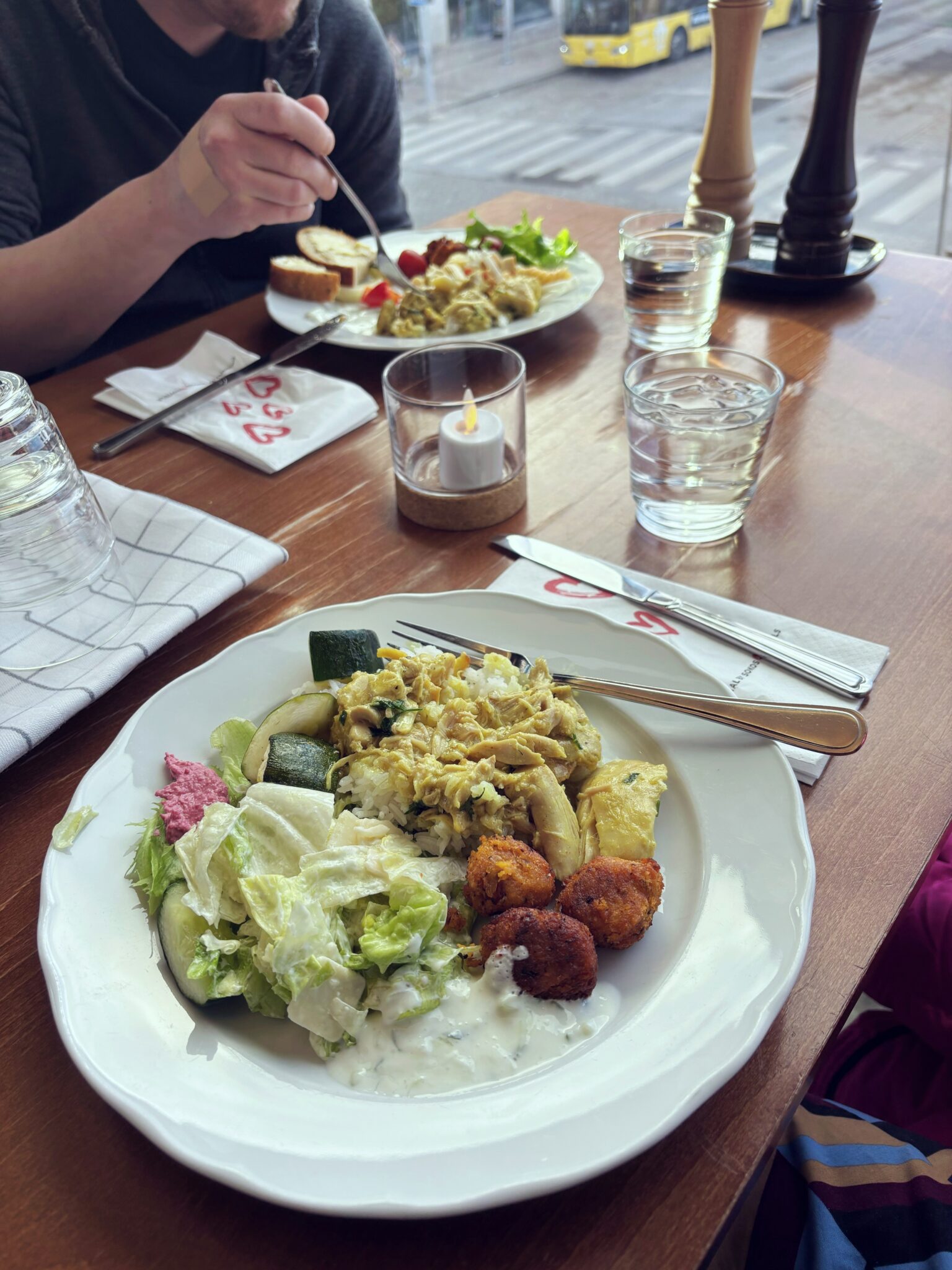 Työpäivän jälkeen kävin vihdoinkin verikokeilla, jotka lääkäri oli määrännyt minulle jo viime syksynä. En tiedä miksi niitä olen siirtänyt jatkuvasti. Kai olen ajatellut, että ”ensi viikolla syön terveellisemmin ja otan vitamiinit ja sitten menen verikokeisiin” -tyylillä. Verikokeiden jälkeen sain lounasseuraa ja käytiin syömässä Trattoriassa. Oli tosi hyvää ruokaa ja niin kaunis miljoo. Viereissä pöydässä istui kolme vanhempaa rouvaa ja en voinut olla kuulematta heidän keskusteluaan tarjoilijan kanssa siitä, että kuinka he ovat tunteneet 50-vuotta ja tämä on heidän vakkaripöytä mihin tulevat viikottain vaihtamaan kuulumisiaan. Mulle tuli ihan mieleen sinkkuelämän naiset vanhuksina – siinä he söivät lounasta ja joivat kuohuviiniä, jotenkin niin suloista.