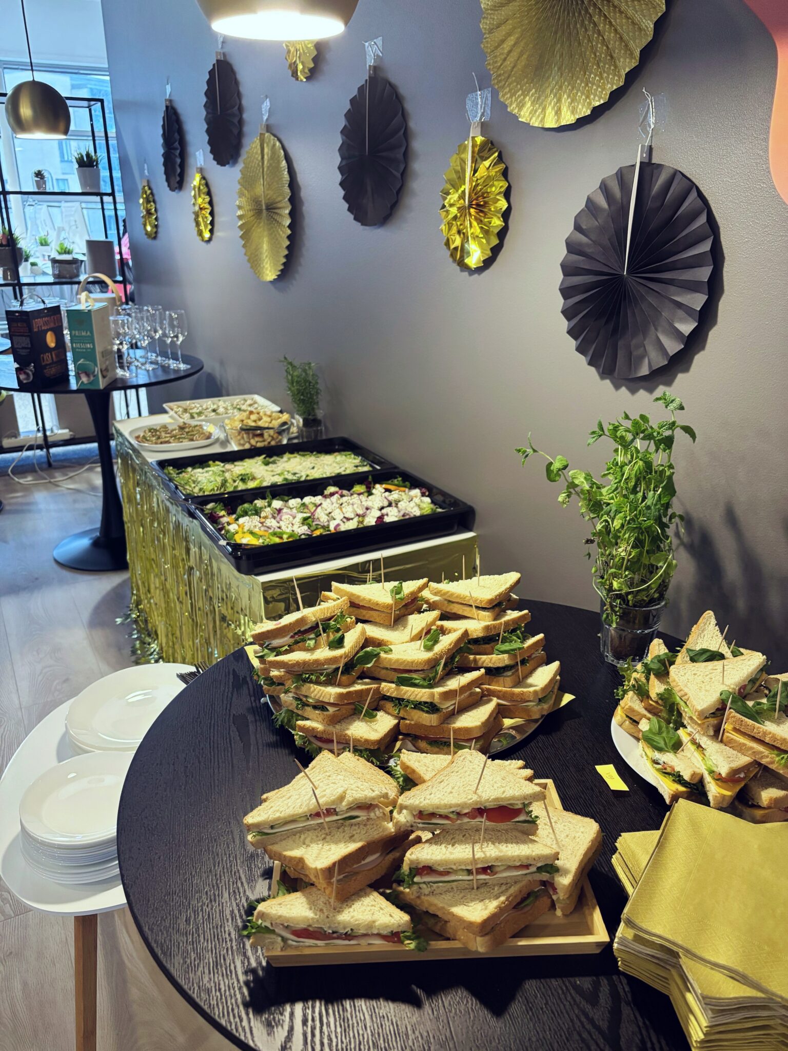 Meillä oli oman yrityksen juhlat tammikuun vikana päivänä Espoon toimistollamme mihin olimme kutsuneet myös asiakkaamme. Meillä oli teemana 20-luku ja työkamut olivatkin koristelleet toimiston upeasti. Mä suuntasin heti aamusta Espooseen auttamaan tarjoiluiden kanssa ja väänsin kolmioleipiä joku kolme tuntia! Meillä oli oma baaritiski, mistä vieraat sai tilata juotavaa. Ohjelmana meillä oli pokeria, jota en itse mennyt kyllä pelaamaan. Juhlat olivat oikein mukavat ja olisin varmasti viihtynyt pidempäänkin, mutta viimeinen bussi Turkuun lähti jo 21:30. Muut jäivät vielä juhlimaan aamun pikkutunneille saakka ja olikin tekemistä, että pääsin edes lähtemään, kun kukaan ei olisi halunnut päästää minua pois (piti vähän salaa hiippailla ovesta ulos) 😀