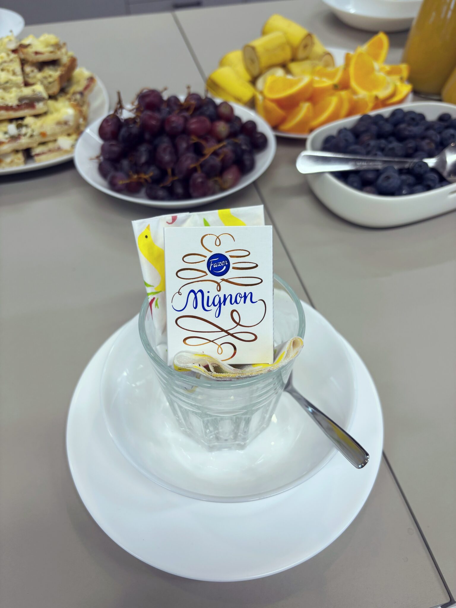 Matkustan aina kerran kuussa meidän toimistolle Espooseen. Nyt mun Espoo-päivä osui juuri pääsiäisviikolle ja loihdittiin työkavereiden kanssa pääsiäisbrunssi täynnä kaikkia aamupalaherkkuja ja tehtiin myös alkoholitonta mimosaa. Mun idea oli laittaa kattaukseen kaikkien lautasille pääsiäismunat ja musta ne näytti niin söpöiltä. Heti samalla viikolla loihdin vielä toisen pääsiäisaamiaisen mun asiakkaan toimistolla Turussa. Rakastan järjestää kaikkia tämmöisiä hömpötyksiä ja ne ei edes tunnu työltä ollenkaan, kun nautin tälläisten tapahtumien järjestämisestä niin paljon.