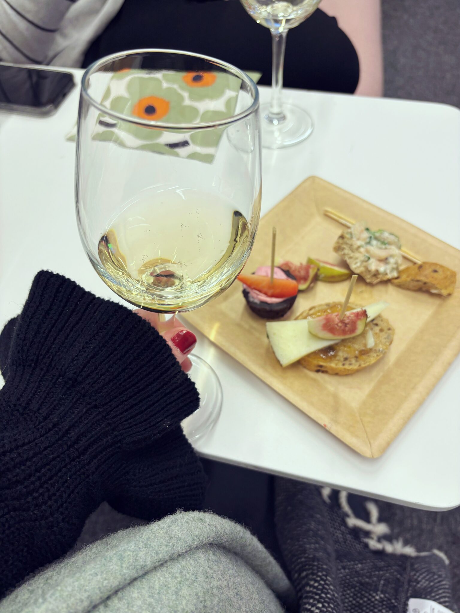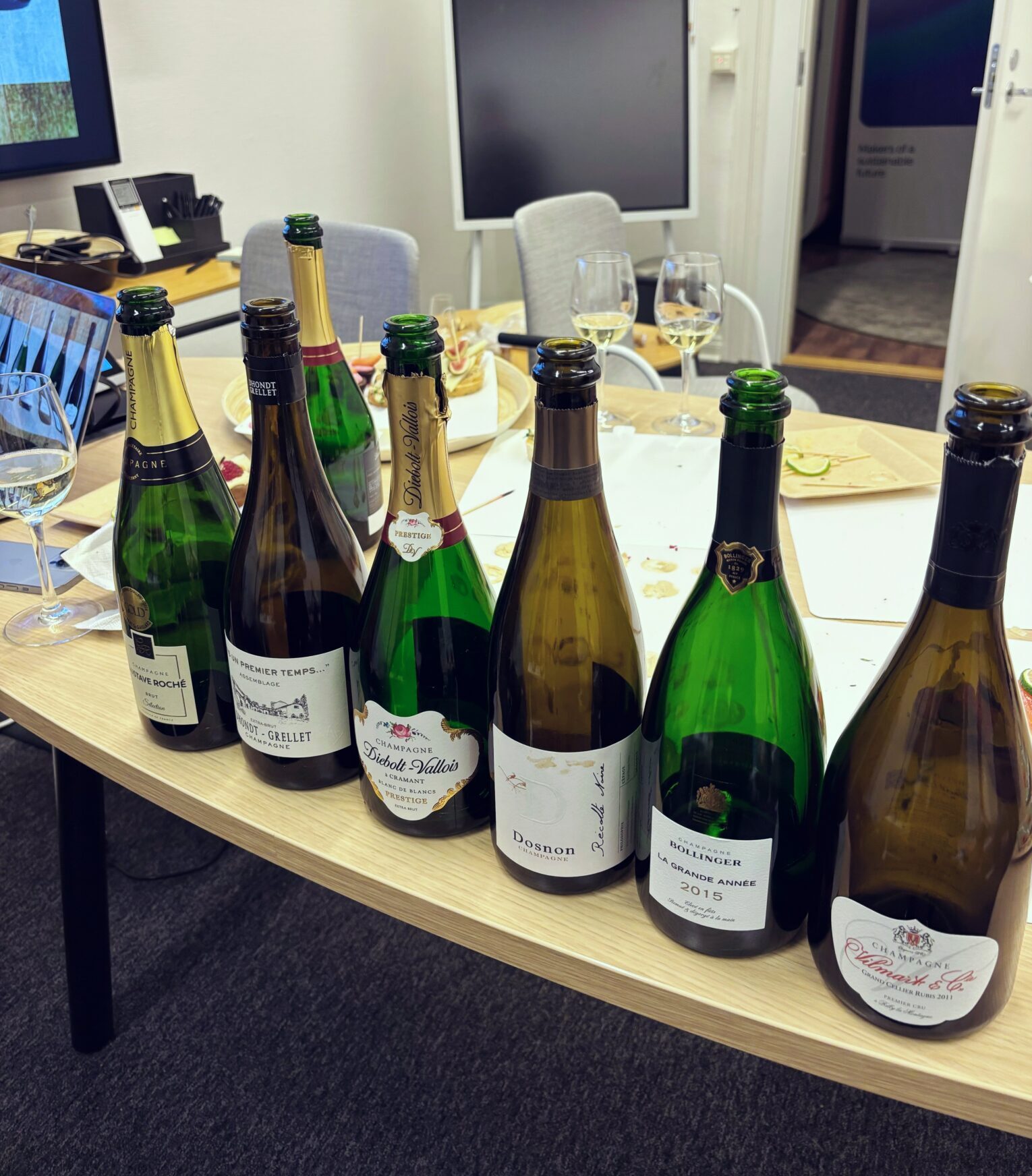 Osallistuin ensimmäistä kertaa elämässäni samppanja-tastingiin, joka järjestettiin mun asiakkaan toimistolla. Tämä ei ollut ns. virallinen samppanja-tasting, mutta oikein mukava ja kupliva sellainen. Kokoonnuttiin työpäivän jälkeen toimiston isoon neukkariin minne olin käynyt hakemassa Deliberistä erilaisia pinxtoja – niin makeita kuin suolaisiakin. Yksi työtekijöistä on melkoinen viinivelho ja hän piti meille tastingin, joka venyi neljän tunnin mittaiseksi. Oli tosi mielenkiintoista kuulla miten samppanjoita valmistetaan ja tuotetaan. Itse en ole tainnut ikinä aitoa samppanjaa ostaa, joten oli tosi mahtavaa päästä maistelemaan montaa eri hintaluokan samppanjaa 🥂