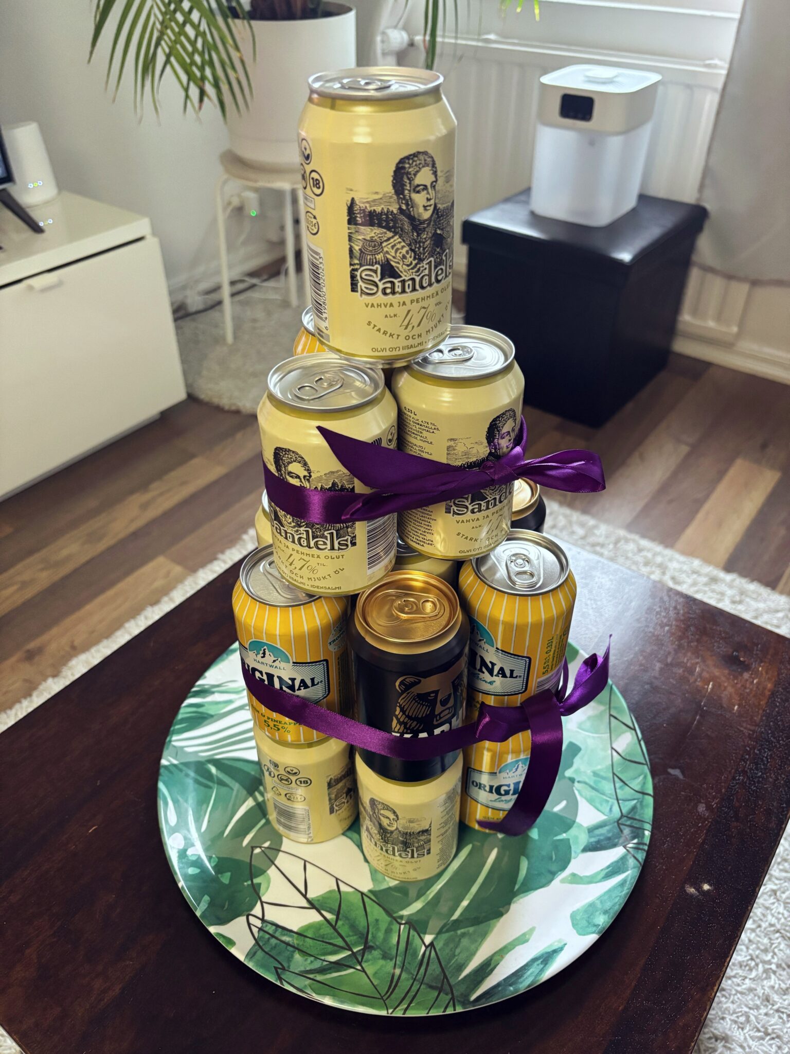 Juhlat starttasivat minun luona kolmen maissa, kun ensimmäiset vieraat saapuivat. Tässähän on hauskaa se, että en ollut aikaisemmin tavannut Joonaksen ystäviä, joten oli jotenkin hupaisaa, että kaksi randomia miestä tulee mun luokse. Tein tarjolle ison juustotarjottimen sekä skågen-kaurakuppeja. Tavallisen täytekakun asemasta toimitteli mun rakentama olut-lonkerokakku, joka oli kyllä kiva, sillä siitä kaikki vieraat sai ottaa itselleen vähän virvoketta.