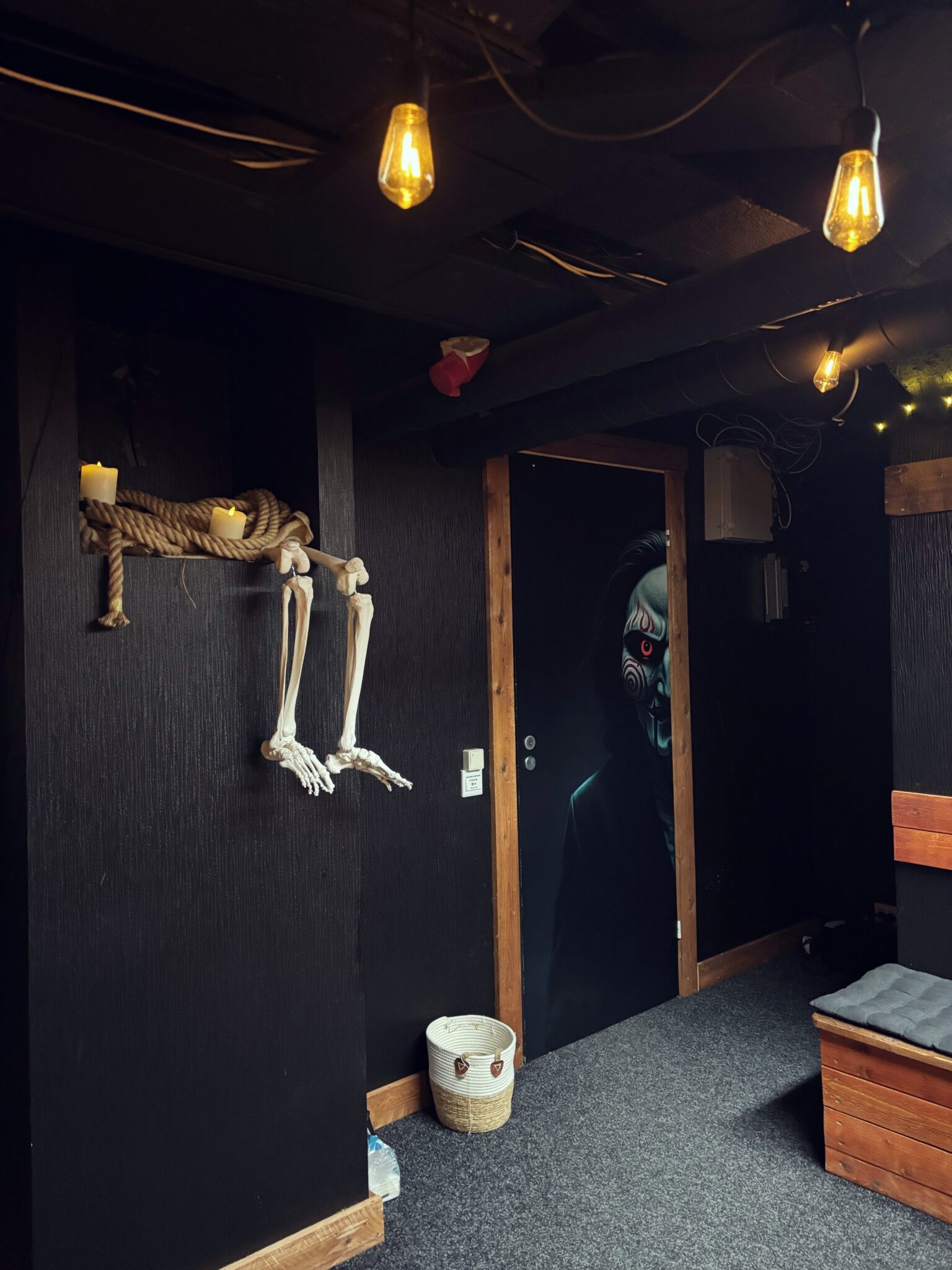 Trapped -pakohuone oli aivan next level. Meille puettiin päähän mustat huput ja meidät talutettiin huoneeseen ja kahlittiin jaloista kiinni. Mulla oli sellainen semi paniikki tuossa kohtaa, kun meitä talutettiin sinne huoneeseen ja voin kertoa, että jo siinä vaiheessa adrenaliini oli ainakin mulla huipussaan. Meitä oli yhteensä kuusi pelaajaa ja viisi meistä kahlittiin ja yksi jätettiin vapaaksi, jotta hän voi etsiä avaimet millä saa meidät irti kahleista. Peli alkoi, saatiin ottaa huput pois päästä ja oli ihan pimeää. Valot syttyi pikkuhiljaa välkkyen ja olimme kahlittuina putkistoihin huoneessa, joka oli suoraan kuin Saw -kauhuelokuvasta. Enempää en viitsi pelistä paljastaa, mutta sanotaanko näin, että tehosteet ja tunnelma olivat aivan huiput verrattuina muihin pakopeleihin, joissa olen käynyt. Pääsimme huoneesta ulos ennen kuin tunti täyttyi, mutta en usko, että musta oli mitään apua, kun lähinnä vaan olin paniikissa 😂