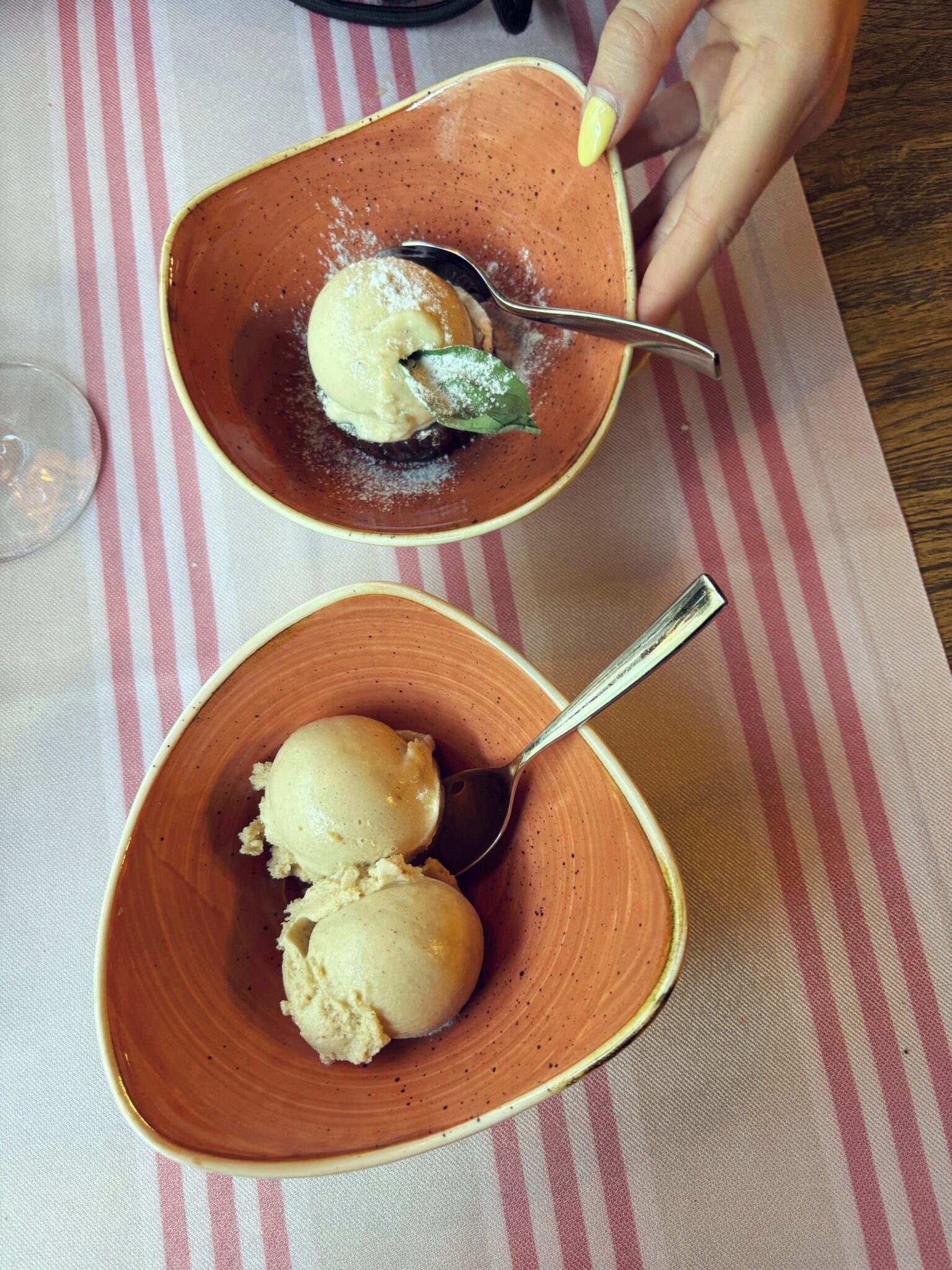 Ravintolassa oli ihanan tunnelmallinen ja lämmin sisustus ja pöytään oli mukava istahtaa. Tilasimme alkupalaksi jaettavaksi antipasto-lautasen valkoviinin kera ja kylkeen sai myös gluteenitonta leipää. Oli ihana napostella antipastoja kera hyvän viinin ja höpötellä Minnan kanssa. Pääruoaksi otimme jaettavaksi lihapullapastan ja Caesar Deluxe -pizzan, jossa oli kanaa, caesarsalaattia, parmesania ja rapeaa pekonia. Mulla on vähän huonoja kokemuksia ravintoloiden gluteenittomista pastoista, mutta tämä pasta oli todella hyvää – ei yhtään sellaista kuivaa ja tahmeaa. Pizza oli myös todella hyvää ja annokset olivat reilun kokoisia – ainakin meidän mahoille! Jälkiruoaksi otettiin vielä herkulliset jätskit nam!