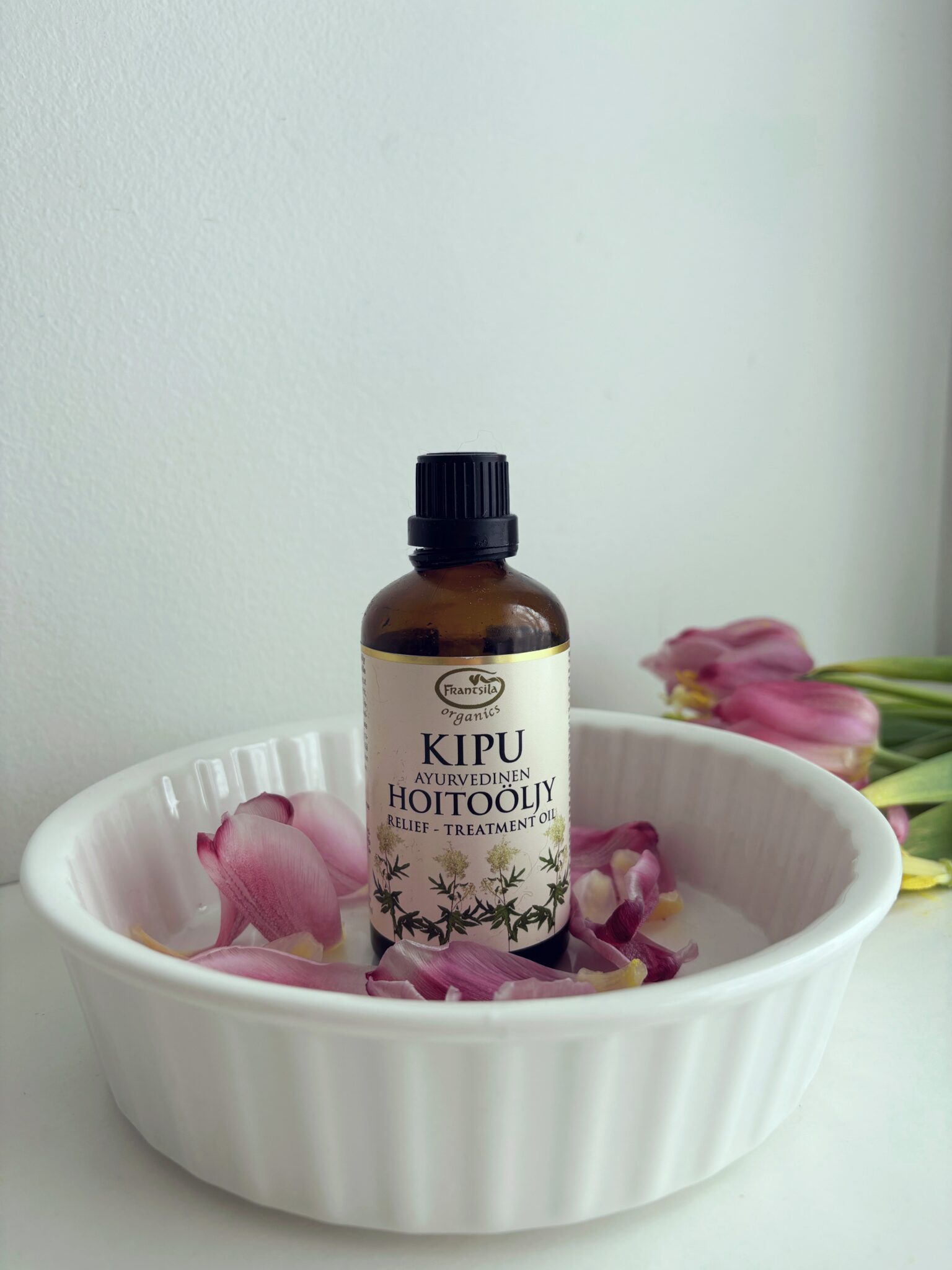 Itselläni on polvissa hankala nivelrikko ja käytän tätä kipuhoito-öljyä erityisesti polviin. Se ei tietenkään nivelrikossa poista kipua, mutta olen kokenut, että se kuitenkin lieventää kipuilua. Kipuhoito-öljy toimii erinomaisesti myös kipeille niskoille ja rakastan ennen nukkumaan menoa hieroa öljyä niskoihin, olkapäihin ja polviin. Tuoksu on todella miellyttävä ja ehkä vain luulen tai sitten se on totta, että myös nukahdan helpommin ja aamulla ei ole niin jäykkä olo.